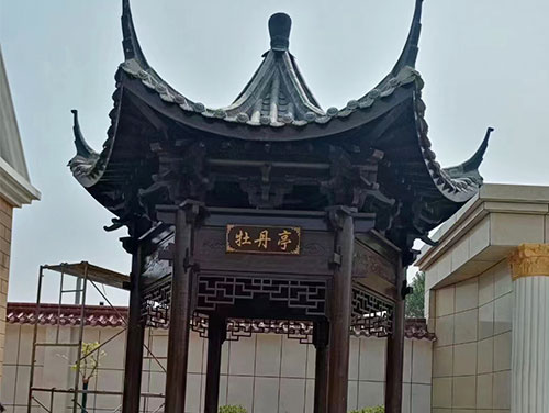 細(xì)節(jié)處理:雕刻部分應(yīng)線條流暢,手工雕刻更顯精致。同時,頂部設(shè)計也很重要,有效的防水設(shè)計能延長涼亭的使用壽命。